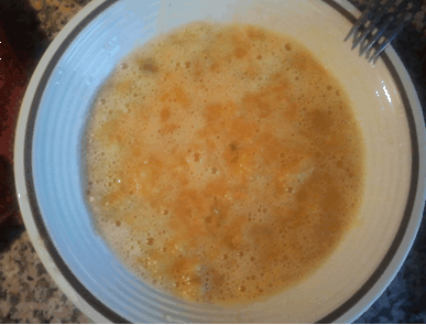 los tres huevos y los batimos con un poco de sal.